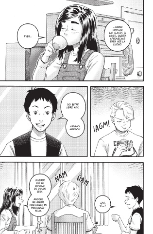 ...como empiezo las clases el pues... lunes, quería aprovechar para ver la ciudad. ¡yo estar libre hoy! ¿vamos juntos? ¡claro! así me explicas de dónde eres. anoche me quedé ¿ah, con ganas de sí...? preguntár- telo.