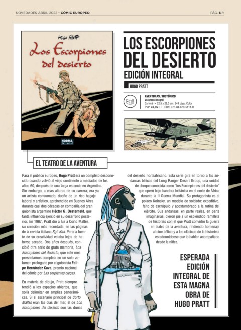 Para el público europeo, Hugo Pratt era un completo descono- del desierto norteafricano. Esta serie gira en torno a las an-