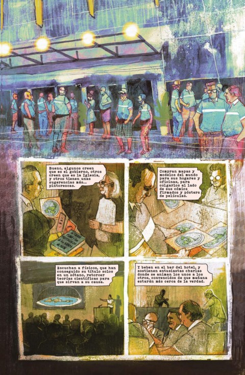 rostro. Una sonrisilla que decía que ue Tierra era ra Escuchan a físicos, que han Y beben en el bar del hotel, y