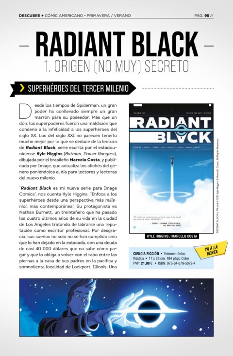 “Radiant Black es mi nueva serie para Image RADIANT BLACK is TM and © 2021 Kyle Higgins & Marcelo Costa. All Rights Reserved.