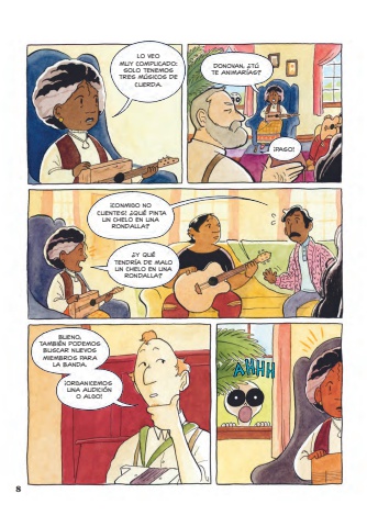 8LO VEO MUY COMPLICADO: SOLO TENEMOS TRES M%u00daSICOS DE CUERDA. DONOVAN, %u00bfT%u00da TE ANIMAR%u00cdAS?%u00a1PASO!%u00a1CONMIGO NO CUENTES! %u00bfQU%u00c9 PINTA UN CHELO EN UNA RONDALLA?%u00bfY QU%u00c9 TENDR%u00cdA DE MALO UN CHELO EN UNA RONDALLA?BUENO, TAMBI%u00c9N PODEMOS BUSCAR NUEVOS MIEMBROS PARA LA BANDA. %u00a1ORGANICEMOS UNA AUDICI%u00d3N O ALGO!