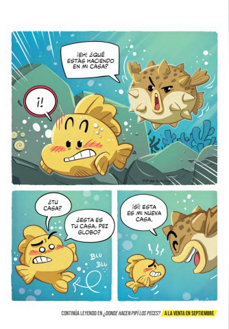 %u00a1Eh! %u00bfQu%u00e9 est%u00e1s haciendo en mi casa?%u00a1!%u00bfTu casa?%u00bfEsta es tu casa, pez globo?%u00a1S%u00ed! Esta es mi nueva casa.TRIPA_DONDE HACEN PIPI LOS PECES coed CASTELLANO 160x205.indd 16 5/7/24 13:03CONTIN%u00daA LEYENDO EN %u00bfDONDE HACEN PIP%u00cd LOS PECES? A LA VENTA EN SEPTIEMBREPVP por determinar