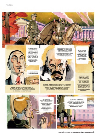El Reino Unido considera una falta de%u2026 tacto que Su Majestad Imperial acoja a un pacifista. Como aliados de Rusia, apoyamos la idea de que expulse a ese%u2026 renegado.%u00a1El exilio es poco para ese amigo de los socialistas! %u00a1Debemos impedir que un siniestro mujiktermine gobernando Rusia! Mientras esa rata viva%u2026 %u00a1no podremos ganar!%u00a1No podemos abrirle las puertas a ese loco vicioso! Ya sabr%u00e1 qu%u00e9 se rumorea de su relaci%u00f3n con la Zarina%u2026El pr%u00edncipe F%u00e9lix Yus%u00fapov, casado con la princesa Irina, sobrina del Zar%u2026 y un sodomita consumado. %u00bfRechazar%u00eda Rasput%u00edn sus insinuaciones y se burlar%u00eda de sus deseos? Solo as%u00ed se explica tama%u00f1a aversi%u00f3n%u2026Vladimir Purishk%u00e9vich, un pol%u00edtico ultraderechista exaltado, exdirigente de las Centurias Negras. El zar sabe que a sus espaldas llama %u00abperra alemana%u00bb a la zarina%u2026 y, sin embargo, es fiel a la corona.Oswal Rayner, esp%u00eda al servicio de Su Graciosa Majestad. Como todos los ingleses, no tiene reparos en insultaral Zar bajo su propio techo.O tome medidas m%u00e1s dr%u00e1sticas.Entiendo su angustiada urgencia por actuar, pero comprendan esto: a ese hombre que ustedes llaman %u00abrata%u00bb, %u00abflagelador%u00bb o %u00abvicioso%u00bb%u2026%u2026o incluso %u00abdemonio sagrado%u00bb, la Madre Rusia le debe la subsistencia del %u00fanico heredero de la corona%u2026 y yo le debola vida de mi hijo.CONTIN%u00daA LEYENDO EN UNA REVOLUCI%u00d3N LLAMDA RASPUT%u00cdNP%u00c1G. 122 //