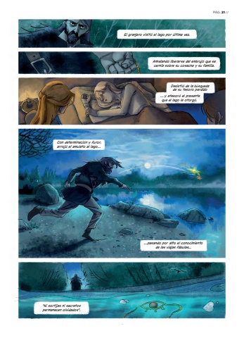 El granjero visit%u00f3 el lago por %u00faltima vez.Anhelando liberarse del embrujo que se cern%u00eda sobre su cosecha y su familia.Desisti%u00f3 de la b%u00fasqueda de su tesoro perdido %u2026y atesor%u00f3 el presente que el lago le otorg%u00f3.Con determinaci%u00f3n y furor, arroj%u00f3 el amuleto al lago%u2026...pasando por alto el conocimiento de las viejas f%u00e1bulas...%u201cNi sortijas ni secretospermanecen olvidados%u201d.7P%u00c1G. 21 //