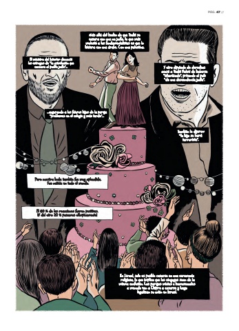 Pero nuestra boda tambi%u00e9n fue muy aplaudida. Fue noticia en todo el mundo.El 80 % de las reacciones fueron positivas. %u00a1Y del otro 20 % pasamos ol%u00edmpicamente! El ministro del Interior denunci%u00f3 los estragos de %u201cla asimilaci%u00f3n que consume al pueblo jud%u00edo%u201d... M%u00e1s all%u00e1 del hecho de que Tsahi se casara con una no jud%u00eda, lo que m%u00e1s molest%u00f3 a los fundamentalistas es que lo hiciera con una %u00e1rabe. Con una palestina. Y otro diputado de derechas acus%u00f3 a Tsahi Halevi de haberse %u201cislamizado%u201d, privando al pa%u00eds %u201cde una descendencia jud%u00eda%u201d. ...augurando a los futuros hijos de la pareja %u201cproblemas en el colegio y m%u00e1s tarde%u201d... Tambi%u00e9n le dijeron: %u201cTu hijo se har%u00e1 terrorista%u201d. En Israel, solo es posible casarse en una ceremonia religiosa, lo que implica que los c%u00f3nyuges sean de la misma confesi%u00f3n. Las parejas mixtas u homosexuales a menudo van a Chipre a casarse y luego legalizan su uni%u00f3n en Israel.32 P%u00c1G. 47 //