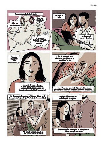 Ahora nos escribe bastante gente: Salgo con una musulmana. Mi amiga es %u00e1rabe, es complicado. %u00bfC%u00f3mo hac%u00e9is vosotros?Tengo una relaci%u00f3n con un jud%u00edo.%u00bfY desde la boda?Yo sigo con mi carrera de actor%u2026Yo ya no hago prime time.Me cans%u00e9 de que me dijeran: %u201cC%u00e1llate y da gracias por tener la suerte de vivir aqu%u00ed y no en otro pa%u00eds donde te habr%u00edan decapitado hace mucho%u201d. Y el 3 de marzo de 2021, di a luz un ni%u00f1o, Adam, en un hospital de Tel Aviv. Le pusimos Adam porque desde el principio tuvimos claro que quer%u00edamos un nombre que funcionase en los dos idiomas. En el momento de registrar al ni%u00f1o, me fij%u00e9 que en el formulario hab%u00edan puesto %u201cjud%u00edo%u201d al lado de la nacionalidad*. *En Israel, la religi%u00f3n consta en los documentos de identidad. Le expliqu%u00e9 al funcionario que Tsahi era jud%u00edo pero yo no. Propuso escribir %u201csin religi%u00f3n%u201d en los papeles de Adam, cosa que aceptamos. 34 P%u00c1G. 49 //