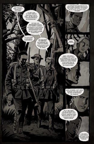 Lo importante es que no te mat%u00f3. Mira, cuando las cosas se ponen tan feas, yo pienso en mi chico, all%u00e1 en casa. Mi hijo.%u00bfTe Sientes bien, Johnny? Est%u00e1s muy callado.%u00a1Claro que s%u00ed, Kurt! Mejor que nunca. S%u00f3lo que%u2026 No s%u00e9, esa %u00faltima escaramuza. En Pordenone%u2026Estaba con bookings frente a la tienda, jugando distra%u00eddo a las cartas, cuando los boches descargaron toda su artiller%u00eda sobre nosotros%u2026Y te acojon%u00f3. Lo entiendo, compa%u00f1ero. Es que pas%u00f3 tan r%u00e1pido%u2026 De haberme matado no sabr%u00eda qu%u00e9 lo hizo. Ni me hubiera olido el ob%u00fas.Alex, %u00bfcierto?Alex. Con s%u00f3lo 9 a%u00f1os, ya es todo un hombrecito. S%u00f3lo me tiene a m%u00ed, pero hubiera merecido como padre algo m%u00e1s que un humilde vendedor de charcuter%u00eda.Anda, hombre, Kurt. Eres un buen tipo. Ese cr%u00edo es muy afortunado de tenerte.No lo s%u00e9. Pero %u00e9l es la raz%u00f3n de que est%u00e9 aqu%u00ed. La de todos, %u00bfverdad? Para ser algo de lo que podamos estar orgullosos.Y volver a casa Siendo mejores que cuando nos fuimos.