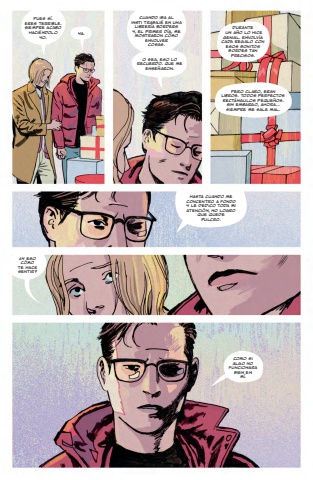 Pues s%u00ed. eres terrible. siemPre acabo haci%u00e9ndolo yo.cuando iba al insti trabaj%u00e9 en una librer%u00eda borders y, el primer d%u00eda, me mostraron c%u00f3mo envolver cosas.o sea, eso lo recuerdo. Que me ense%u00f1aron.durante un a%u00f1o lo hice genial. envolv%u00eda cada regalo con esos bonitos bordes tan precisos.Pero claro, eran libros. Todos perfectos rect%u00e1ngulos peQue%u00f1os. sin embargo, ahora%u2026 siemPre me sale mal.HasTa cuando me concentro a fondo y le dedico toda mi atenci%u00f3n, no logro que quede pulcro.%u00bfY eso c%u00f3mo te hace sentir?como si algo no funcionara bien en m%u00ed.Ya.