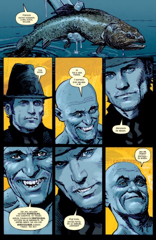 Porque estoy cuidando a mis hijos, William.Tus hijos.S%u00ed. Voy a ser padre.Y espero que salgan a m%u00ed.Asesinos de masas.%u00a1Ja! %u00a1No, William! Saldr%u00e1n especiales.Sus cuerpos. Yo tengo varios juegos de dentadurasextras en mi garganta. De arriba abajo. se las oye mordisquear cuando trago. %u201c%u00d1ic %u00f1ic%u201d.Por dios, est%u00e1s fatal de la cabeza, %u00bfverdad?%u00bfNo me crees? Espera%u2026 ya ver%u00e1s.