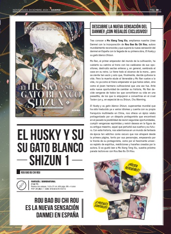 FANTAS%u00cdA / SOBRENATURAL(1 de 11)R%u00fastica con solapas. 14,8 x 21 cm. 624 p%u00e1gs. BN + 4 colorPVP: 21,95 %u20ac %u2022 ISBN: 978-84-679-7227-6DESCUBRE LA NUEVA SENSACI%u00d3N DEL DANMEI! %u00a1CON REGALOS EXCLUSIVOS!Tras conocer a Mo Xiang Tong Xiu, ampliamos nuestra L%u00ednea Danmei con la incorporaci%u00f3n de Rou Bao Bu Chi Rou, autora mundialmente reconocida y que supone la nueva sensaci%u00f3n del danmei en Espa%u00f1a con la llegada de su primera obra, El Husky y su gato blanco Shizun.Mo Ran, el primer emperador del mundo de la cultivaci%u00f3n, ha cubierto su camino al trono con los cad%u00e1veres de sus opositores, destruido sectas enteras y, en general, sembrado el caos en su reino. Lo tiene todo al alcance de la mano%u2026 pero se siente tan vac%u00edo y solo que, finalmente, decide quitarse la vida. Pero la muerte elude al Venerable y Mo Ran vuelve a la vida, no ya como el tirano emperador al que todos odian, sino como el joven hermano cultivacional que una vez fue. Ante esta nueva oportunidad de cambiar su historia, Mo Ran decide vengarse de todos los que convirtieron su vida en una pesadilla, de los que lo empujaron a convertirse en el cruel Taxian-jun y, en especial de su Shizun, Chu Wanning.El Husky y su gato blanco Shizun, superventas mundial que ha sido traducido ya a varios idiomas y cuenta con su propia franquicia multimedia en China, nos ofrece un %u00e9pico relato protagonizado por un d%u00e9spota protagonista que encontrar%u00e1 en el pasado la posibilidad de revivir segundas oportunidades, cumplir venganzas reprimidas y revivir deseos en la figura de su antiguo maestro, aquel que perturb%u00f3 sus sue%u00f1os y su futuro. Con esta historia, nos adentramos en un mundo de fantas%u00eda de %u00e9poca tan adictivo como oscuro que nos atrapar%u00e1 desde la primera p%u00e1gina, tanto por sus personajes, empezando por la tiran%u00eda de su protagonista, como por el fascinante universo repleto de esp%u00edritus, maldiciones y haza%u00f1as creados por la autora. Si os gust%u00f3 leer a Mo Xiang Tong Xiu, vuestra pr%u00f3xima parada lectora es con Rou Bao Bu Chi Rou.ROU BAO BU CHI ROUEL HUSKY Y SUNOVEDADES DICIEMBRE 2024 %u2022 DANMEI P%u00c1G. 39 // SU GATO BLANCOSHIZUN 1 %u00a1P%u00d3STER REVERSIBLE!%u00a12 POSTALESESPECIALES!ROU BAO BU CHI ROU es la nueva sensaci%u00f3n danmei en Espa%u00f1a