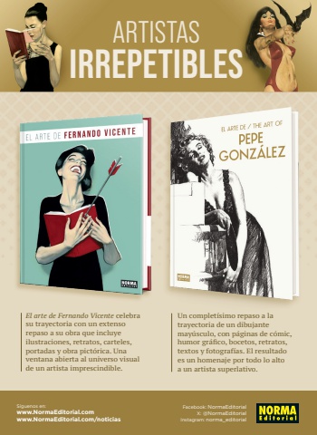 S%u00edguenos en:www.NormaEditorial.comwww.NormaEditorial.com/noticiasFacebook: NormaEditorialX: @NormaEditorialInstagram: norma_editorialARTISTASIRREPETIBLESEl arte de Fernando Vicente celebra su trayectoria con un extenso repaso a su obra que incluye ilustraciones, retratos, carteles, portadas y obra pict%u00f3rica. Una ventana abierta al universo visual de un artista imprescindible.Un complet%u00edsimo repaso a la trayectoria de un dibujante may%u00fasculo, con p%u00e1ginas de c%u00f3mic, humor gr%u00e1fico, bocetos, retratos, textos y fotograf%u00edas. El resultado es un homenaje por todo lo alto a un artista superlativo.