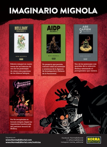 IMAGINARIO MIGNOLAEdici%u00f3n integral en cuatro tomos de las historias de uno de los personajes de c%u00f3mic m%u00e1s populares de los %u00faltimos tiempos.Por fin recopiladas en formato integral, llegan las trepidantes haza%u00f1as pulp del justiciero favorito de Hellboy.S%u00edguenos en:www.NormaEditorial.comwww.NormaEditorial.com/noticiasFacebook: NormaEditorialX: @NormaEditorialInstagram: norma_editorialUno de los personajes m%u00e1s queridos de la colecci%u00f3n Hellboy ostentando el protagonismo que merece.Un proyecto que permite conocer todos los entresijos y aventuras de la Agencia de Investigaci%u00f3n y Defensa de lo Paranormal.