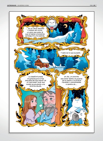 %u2026 en un reino ventoso y helado del norte, un gran oso polar al que le hab%u00edan prometido conseguirle una esposa.Y esto es lo que sucedi%u00f3.La desafortunada muchacha era la hija peque%u00f1a del hijo menor de un mercader local que acab%u00f3 acumulando unaenorme deuda.Un d%u00eda, un enorme oso polar llam%u00f3 a la puerta de su padre y le ofreci%u00f3 riquezas y comodidades a cambio de%u20266ASTRONAVE %u2022 INVIERNO 2026 P%u00c1G. 31 //