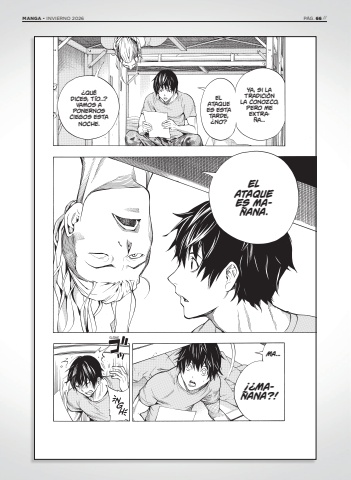 12Ya, si la tradici%u00f3nla conozco, pero meextra%u00f1a...El ataque es esta tarde, %u00bfno?%u00bfQu%u00e9 dices, t%u00edo...?Vamos aponernos ciegos esta noche.Elataque es ma%u00f1ana.Ma...%u00a1%u00bfMa%u00f1ana?!CLONCMANGA %u2022 INVIERNO 2026 P%u00c1G. 66 //